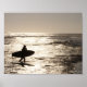 A surfer exits the water after his last ride.