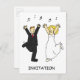 A cartoon bride and groom dancing, with the word 'INVITATION' written underneath.