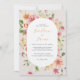 A soft and romantic watercolor wedding invitation featuring an oval frame surrounded by blush, peach, and golden florals. The warm afterglow palette and delicate feminine details create an elegant garden-inspired design perfect for any spring or summer celebration. Easily personalize all text for your wedding day.