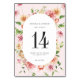 This romantic floral wedding table number features soft watercolor blooms in blush, peach, and garden green, framed around a clean arch silhouette for a refined, feminine look. Designed to complement elegant place settings and reception décor, it blends flirty florals with modern typography for a timeless tablescape.
