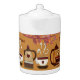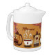 Do it in style - an earthen brown theme Afternoon Tea Party where you can taste the various flavours of tea and celebrate the commencement of wedding/bridal shower/baby shower or any other occasion. Tea time will never be same again with a custom adorned tea pot. Made of bright white porcelain, this tea pot is Dishwasher and microwave safe. The illustration has earthen brown teapot, tea cups & mud colored foliage. Just right for High Tea celebration in the shade of trees in your garden and porch. You can easily personalize the text by 'Customize' button with your choice of script and font size. If you like this artwork, you can visit my theme_decor store for matching/similar items.