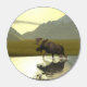 Somewhere in the interior of Alaska a moose strides through a pond on a sunny fall afternoon. As the end of the year approaches the light has taken on the typical yellowish tone that makes everything seem a bit brittle. The sun is dropping down between the mountains in the background.