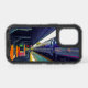 Afternoon Train, the title of the artwork on this OtterBox iPhone 17 Case, is an original photograph by ZoeSPEAK, done in primary pastel colors. The shiny, silvery blue train is stopped at the station, where the yellow sunlight reaches the platform, and lights up the pink wall of the building.