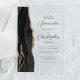 The left-hand edge of this elegant modern wedding invitation features a black watercolor agate border trimmed with faux gold glitter. The customizable text combines script and sans serif fonts in charcoal gray on a clear transparent background.