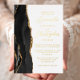 The left-hand edge of this elegant modern wedding invitation features a black watercolor agate border trimmed with faux gold glitter. The customizable text combines script and sans serif fonts in real gold foil on a white background. The reverse side features a matching agate design.