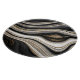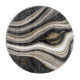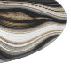 Modern oval cutting board with agate fluid marble black white and gold background.