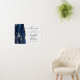 This elegant modern engagement party welcome sign features a navy blue watercolor agate design trimmed with faux gold glitter. Easily customize the charcoal gray text, with the names of the couple in handwriting calligraphy over a large, pale blue ampersand on a white background.