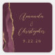 Agate Burgundy Gold Script Wedding Square Sticker