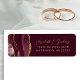The left-hand edge of this elegant modern wedding invitation return address label features a burgundy watercolor agate border trimmed with faux gold glitter. The customizable text combines gold-colored handwriting and sans serif fonts on a burgundy red background.