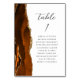 The left-hand edge of this elegant modern wedding table number card features a burnt orange watercolor agate border trimmed with faux gold glitter. The word "table" appears in charcoal gray handwriting script on a white background. Add the names of your guests who are assigned to each table.