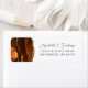 The left-hand edge of this elegant modern wedding invitation return address label features a burnt orange watercolor agate border trimmed with faux gold glitter. The customizable text combines charcoal gray handwriting and sans serif fonts on a white background.