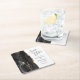 This elegant modern save the date coaster features a black watercolor design trimmed with faux gold glitter. Easily customize the charcoal gray text on a white background.