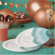 Not all wedding designs are created equal. The asymmetrical layouts for the pieces in this striking wedding set prove that's not a bad thing! Wavy bands of color in contrasting shades of teal blue and blush pink with a center of glittering crystal form a geode/agate accent on most pieces in the set. The coordinating wedding paper plate shown here features a large geode/agate angled to one side and your text on the other. Easily add your names, wedding date and personal 'thank you' message using the provided template. Search ID647 to see all the coordinating pieces in this set.