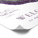 Not all wedding designs are created equal. The asymmetrical layouts for the pieces in this striking wedding set prove that's not a bad thing! Wavy bands of color in contrasting shades of violet purple and green with a center of glittering crystal form a geode/agate accent on most pieces in the set. The wedding 'Welcome' sign shown here features the above plus a template to add a personal message, your names and wedding date. Search ID647 to see all the coordinating pieces in this set.