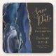 Agate Geode Navy Blue Gold Dark Save the Date Square Paper Coaster