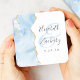 This elegant modern wedding coaster features a baby blue watercolor agate geode design trimmed with faux gold glitter. Easily customize the charcoal gray text on a white background, with the couple's names in handwriting calligraphy over a large, pale blue ampersand.