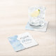 Agate Geode Script Baby Blue Silver Wedding Square Paper Coaster