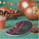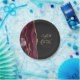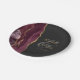 These elegant modern wedding plates feature a burgundy watercolor design trimmed with faux gold glitter. Easily customize the gold colored text on an off-black background, with the names of the bride and groom in handwriting calligraphy over a large gray ampersand.