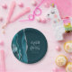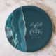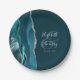 Agate Geode Script Dark Teal Silver Wedding Paper Plates