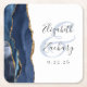 Agate Geode Script Navy Blue Gold Wedding Square Paper Coaster