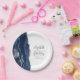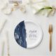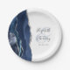 Agate Geode Script Navy Blue Silver Wedding Paper Plates