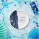 These elegant modern wedding plates feature a navy blue watercolor design trimmed with faux silver glitter. Easily customize the charcoal gray text on a white background, with the names of the bride and groom in handwriting calligraphy over a large pale blue ampersand.