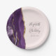 Agate Geode Script Purple Gold Blush Wedding Paper Plates