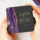 Agate Geode Script Purple Gold Dark Wedding Square Paper Coaster