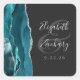 Agate Geode Script Teal Silver Dark Wedding Square Sticker