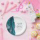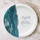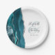 Agate Geode Script Teal Silver Wedding Paper Plates