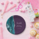 These elegant modern wedding plates feature a teal watercolor design trimmed with faux silver glitter. Easily customize the silver gray text on a purple background, with the names of the bride and groom in handwriting calligraphy over a large ampersand.
