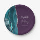 Agate Geode Silver Script Purple Wedding Paper Plates