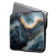 Laptop sleeve featuring a striking agate geode design in rich navy blue with elegant gold marble accents, perfect for adding a touch of sophistication to your tech protection.