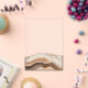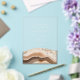 Minimalist wedding invitation featuring agate marble stone background and simple chic graphic design.