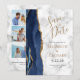 Agate Navy Blue Gold Marble 5-Photo Save the Date Invitation