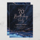 Agate Navy Blue Rose Gold 70th Birthday Invitation