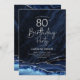 Agate Navy Blue Silver 80th Birthday Invitation