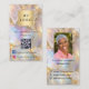 A pinl, rose gold, faux gold opal, agate stone print as background. Personalize and add your business logo,photo, name, title and contact information. Add your website url/link to the Qr code. With Facebook and Instagram icons. Black text.