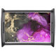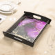 Exquisite free-flowing abstract art for the home. The original was made using alcohol ink which gives these vivacious rich colors. This unique piece was made by international artist Pauline Benjes. See our collection for more beautiful alcohol ink designs. Agate Purple Black Gold Serving Tray.