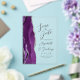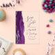 The left-hand edge of this elegant modern wedding Save the Date announcement features a purple watercolor agate border trimmed with faux silver glitter. The customizable text combines charcoal gray handwriting, copperplate and italic fonts on a clear background.