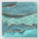 Agate Teal Blue Gold Glitter Marble Stone Coaster