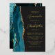 Agate Teal Blue Gold Script Dark Wedding Foil Invitation