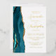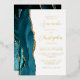 Agate Teal Blue Gold Script Wedding Foil Invitation