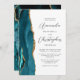 Agate Teal Blue Gold Script Wedding Invitation