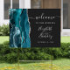 Agate Teal Blue Silver Script Wedding Welcome Yard Sign