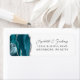 The left-hand edge of this elegant modern wedding invitation return address label features a teal blue watercolor agate border trimmed with faux silver glitter. The customizable text combines charcoal gray handwriting and sans serif fonts on a white background.