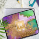Agate watercolor gold foil purple green monogram laptop sleeve