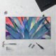 This colorful desk mat features a close-up view of a blue agave plant against a colorful orange desert sunset sky. This modern art abstract image features pretty shades of blue, green, teal, purple, pink, orange and peach. Perfect for home, office or dorm, this bold, vibrant mat makes a great gift for her or him. Click "Personalize this Template" to easily change or remove the featured sample text.