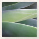 This photograph features a view of a close-up of agave leaves with variations of green tones.