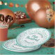 Age 100 Scattered Number Pattern Teal/White Paper Plates